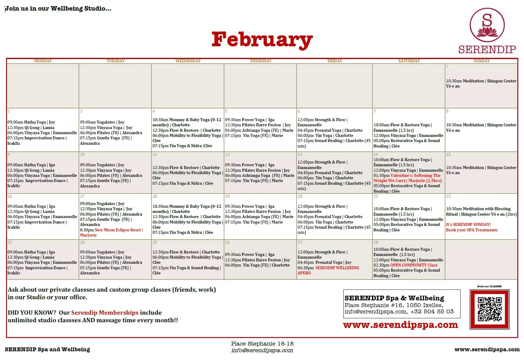 February brings a fresh rhythm to Serendip, and we’re delighted to share our new studio calendar, with inspiring classes and new teachers joining our weekly flow.